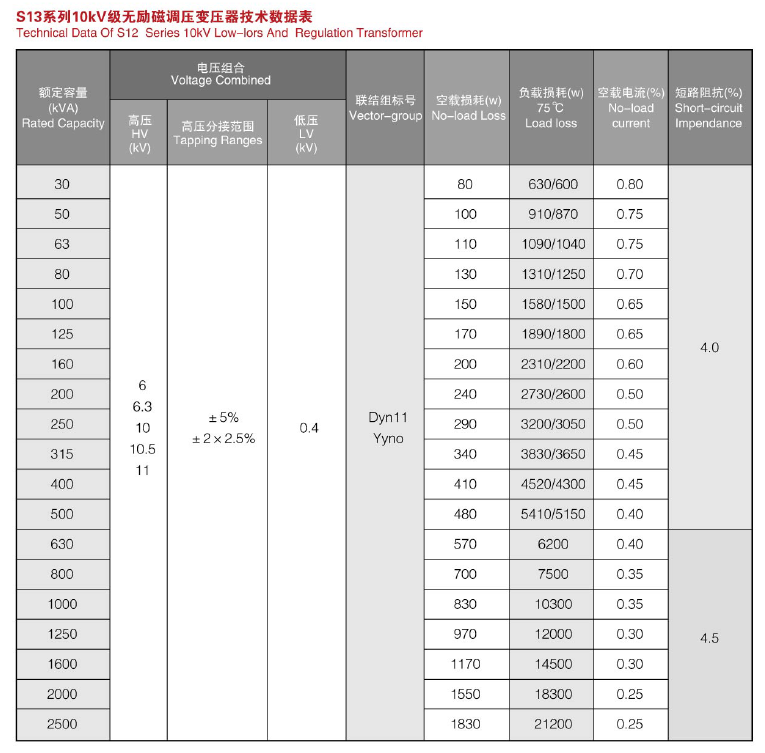 S11~S13-10KV~35KV級(jí)低損耗無(wú)勵(lì)磁調(diào)壓變壓器